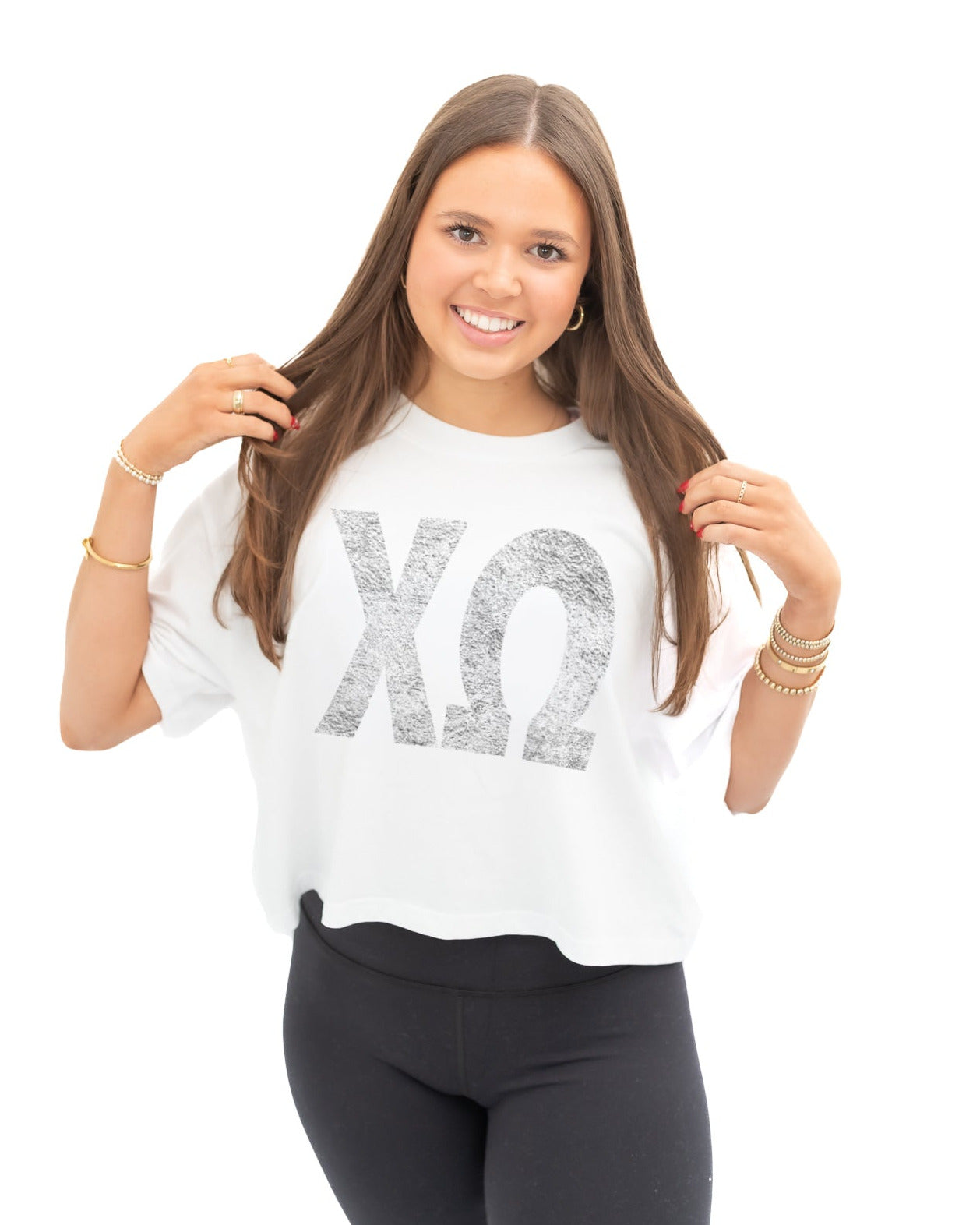 Chi Omega The Boxy Cropped Tee with Distressed Greek Letters