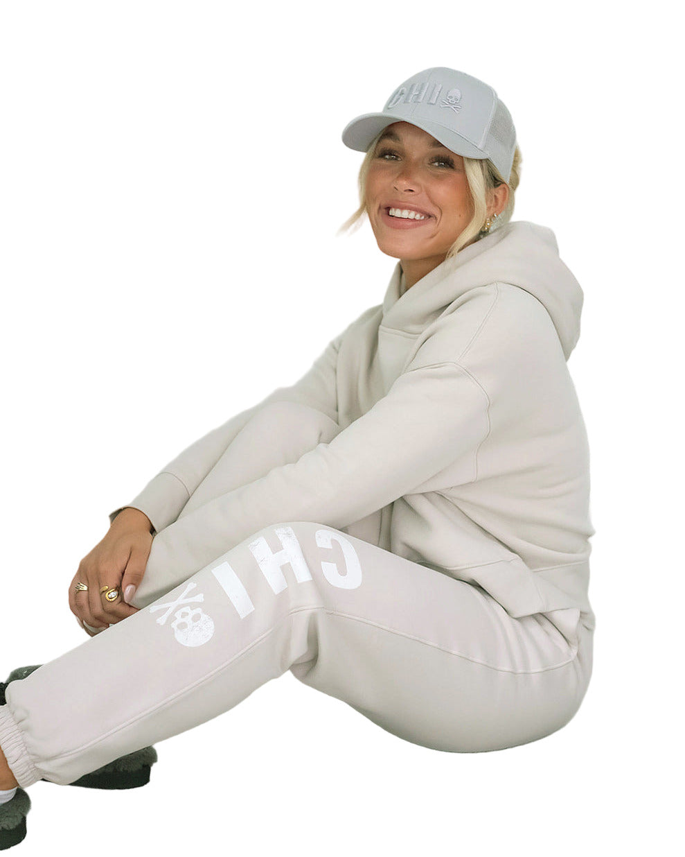Chi Omega Lounge & Go Relaxed Sweatpants with Skull Name Graphic on Leg