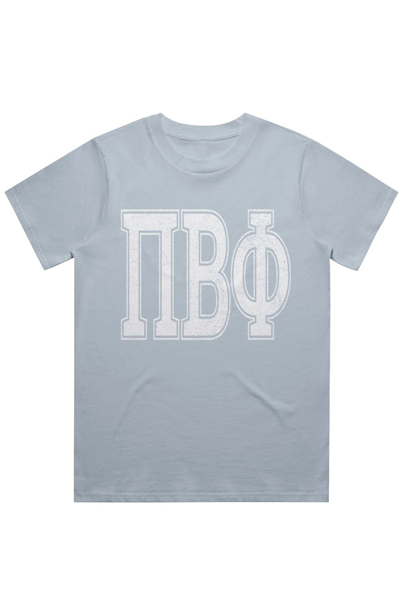 Pi Phi Heavy Hitter Oversized Tee with Distressed Greek Varsity Letters