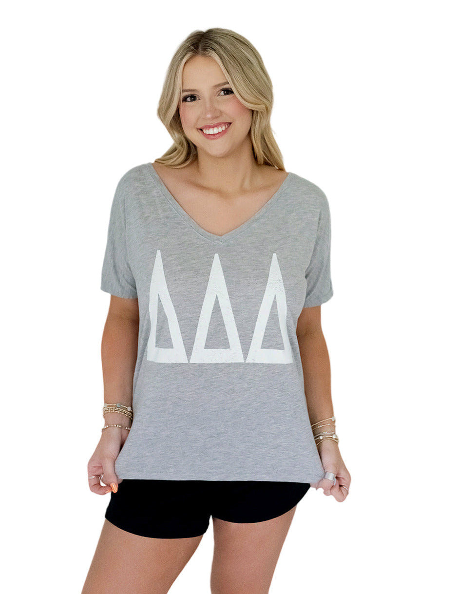 Tri Delta Ultra Soft V-Neck Tee with Distressed Greek Letters